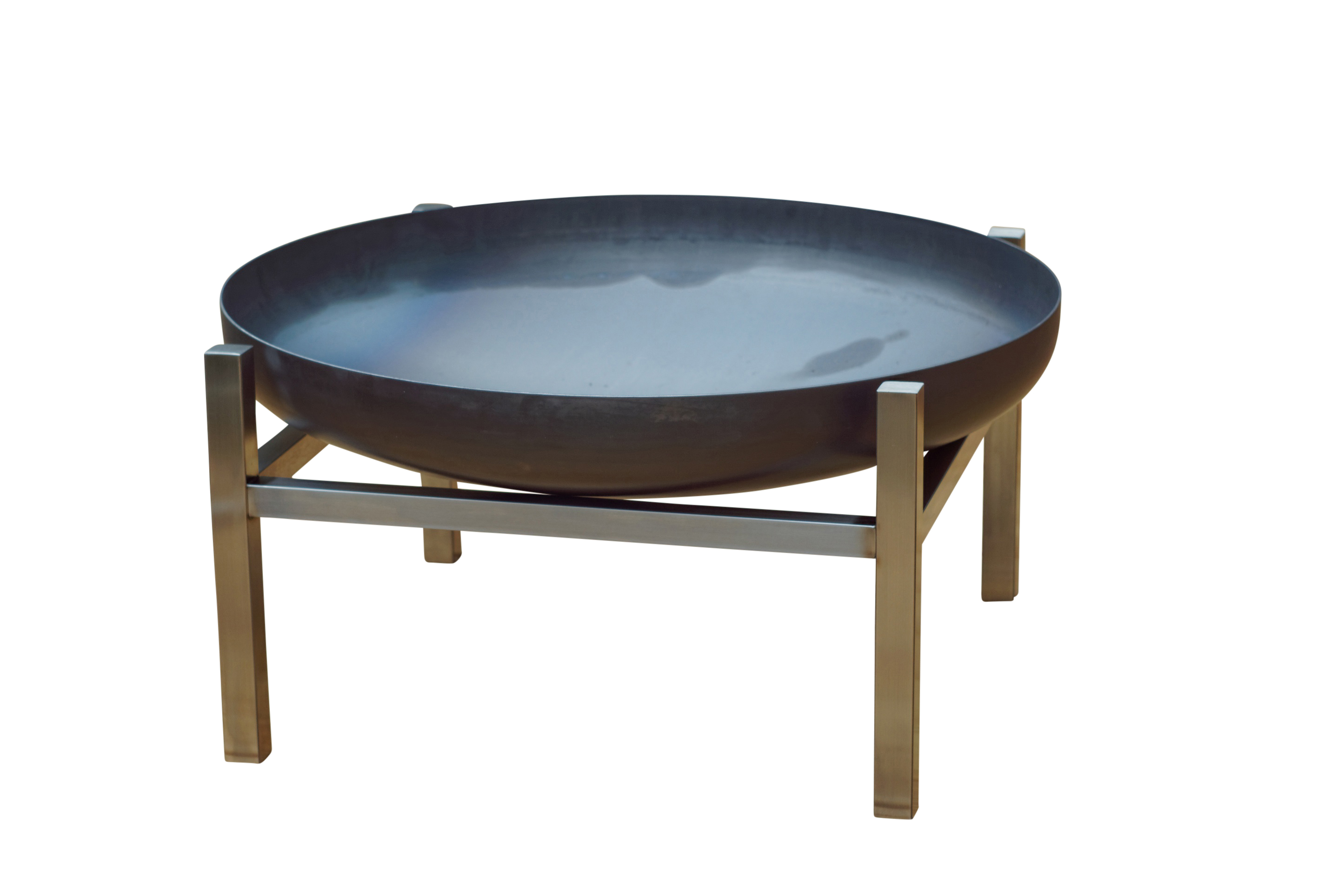 Schwere robuste Feuerschale aus massivem Rohstahl (2,5 mm Materialstärke) mit attraktiver unverwüstlicher Edelstahl-Basis.Diese solide und robuste Feuerschale wird in einer europäischen Designer-Werkstatt weitgehend in Handarbeit hergestellt und entspricht höchsten Qualitätsansprüchen.